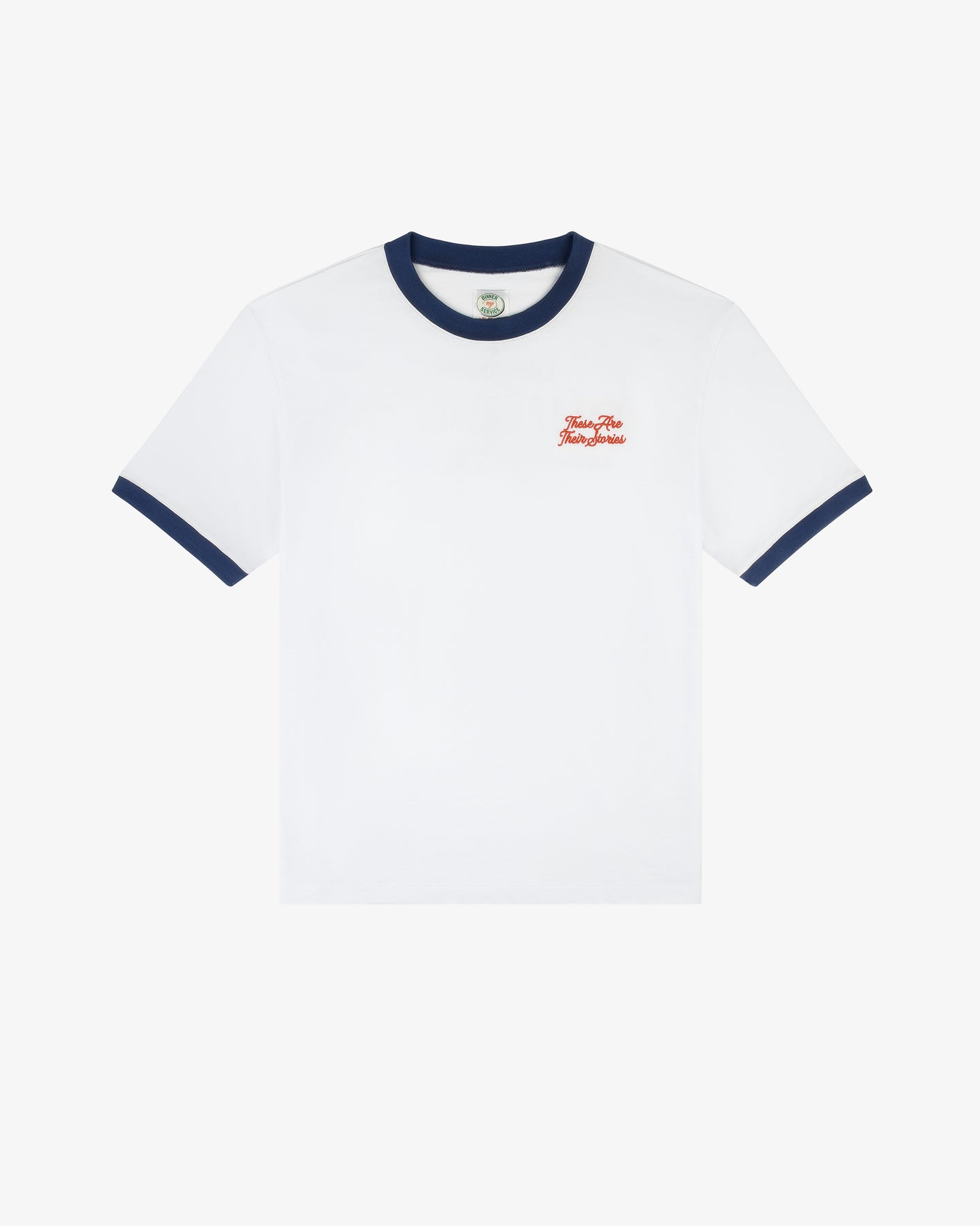 This heritage fit ringer tee is made from 100% cotton and features the show's iconic "These Are Their Stories" embroidered on the front chest. The back sports the screen printed Dun Dun Diner logo. Contrast striped color rib on neck and sleeves. Tee measurements below are listed in inches.