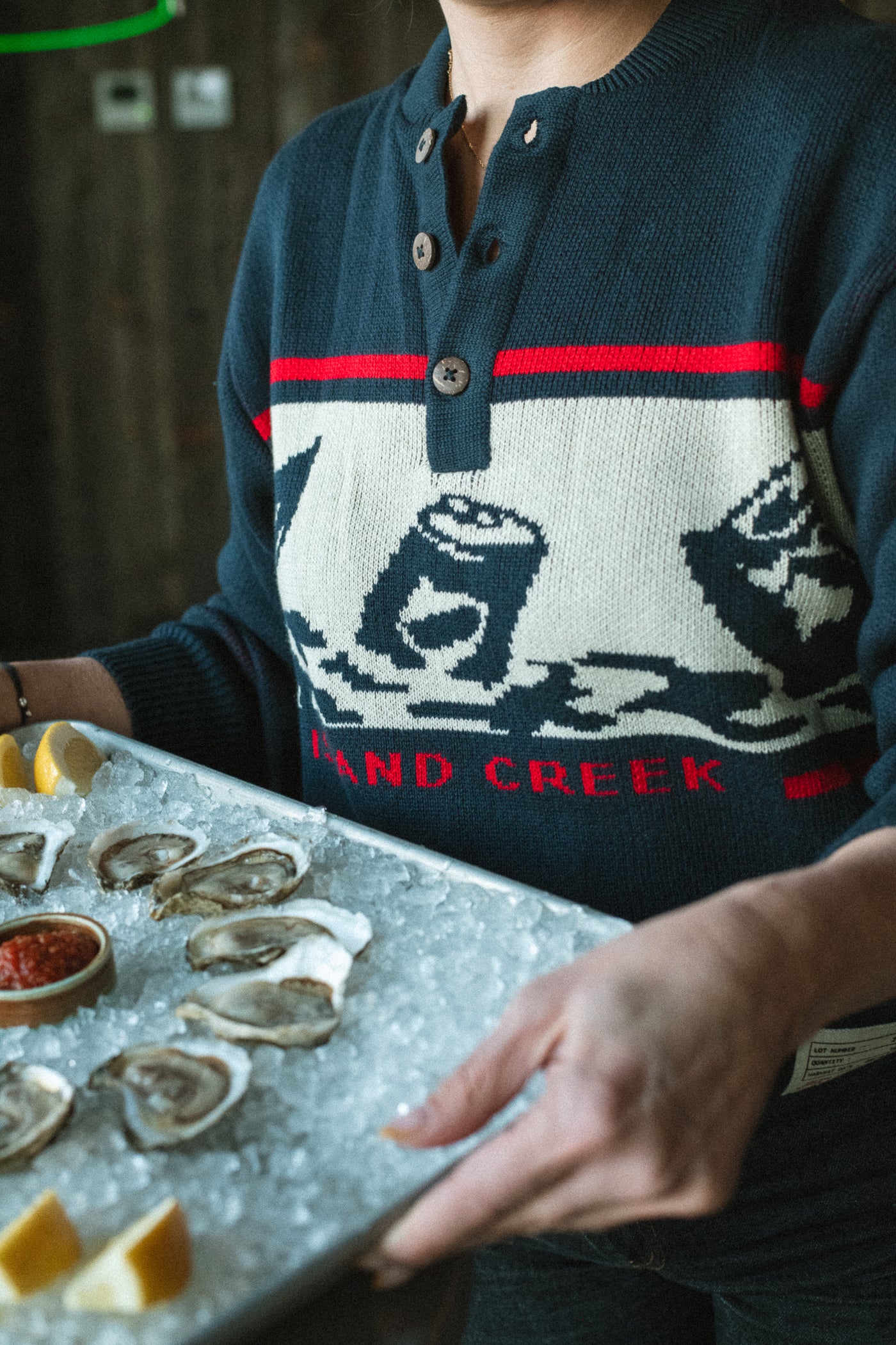 With that spirit in mind, we’re thrilled to announce our contribution to their story in the form of the Island Creek Henley Sweater.