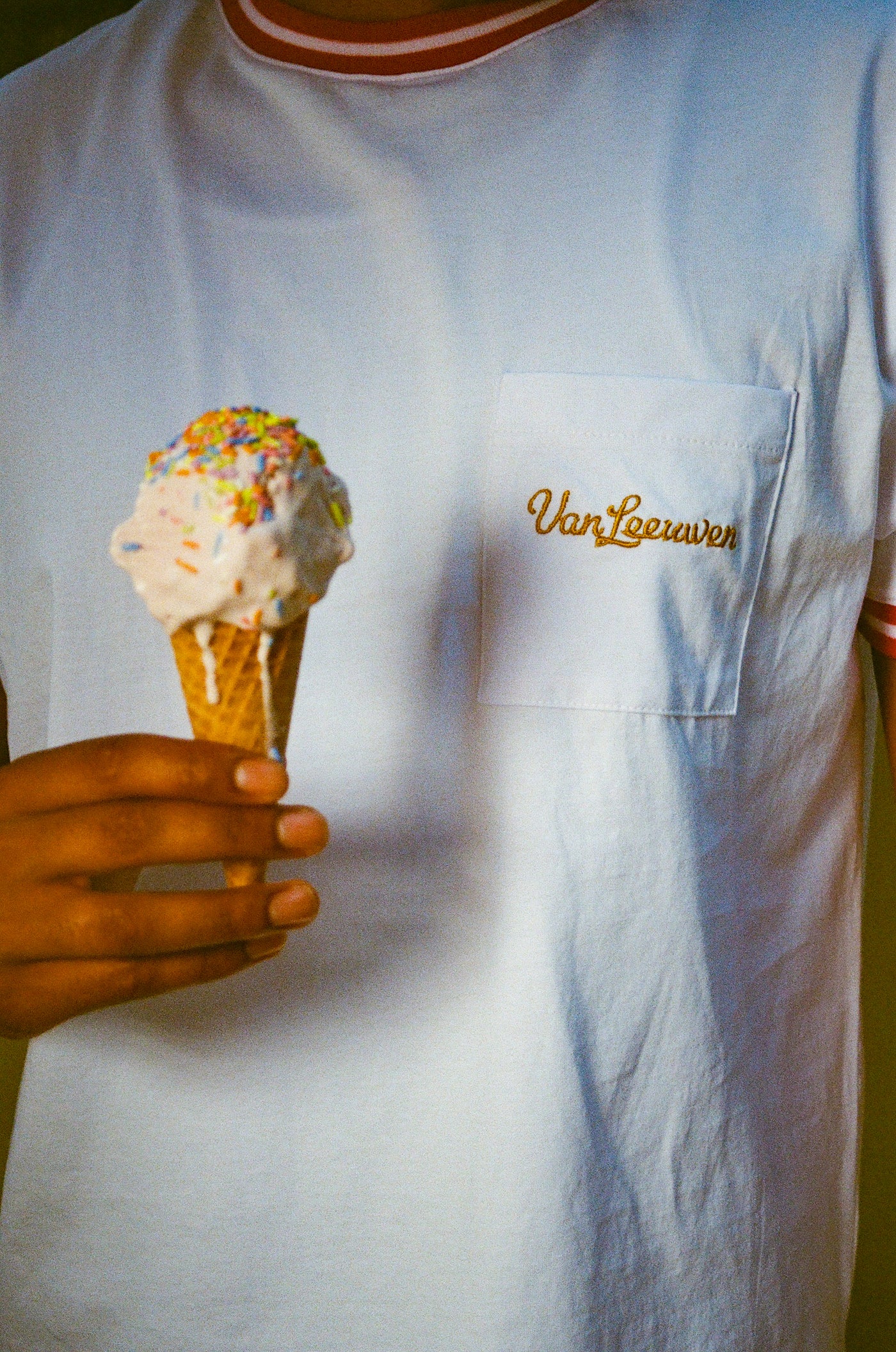 That’s a mission we can get behind. At Dinner Service, we’ve always believed the best things in life are built from intention. The kind that lasts longer than a trend, that feels better the more you live with it. Clothing that belongs to memory, the way ice cream belongs to a hot summer evening. So when we came together with Van Leeuwen, we set out to create a pair of garments that carry the same spirit as a double scoop: simple, crafted, and full of joy.