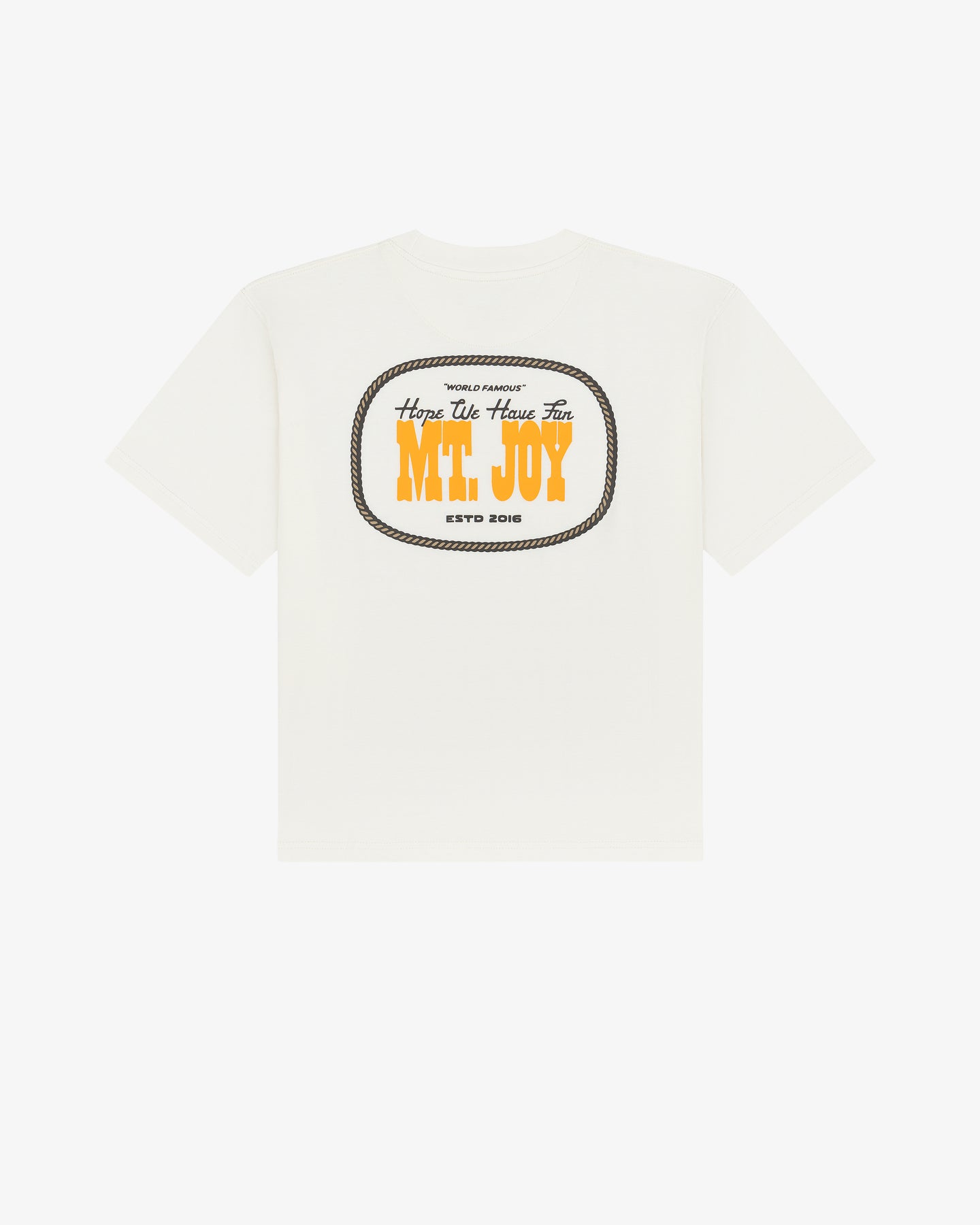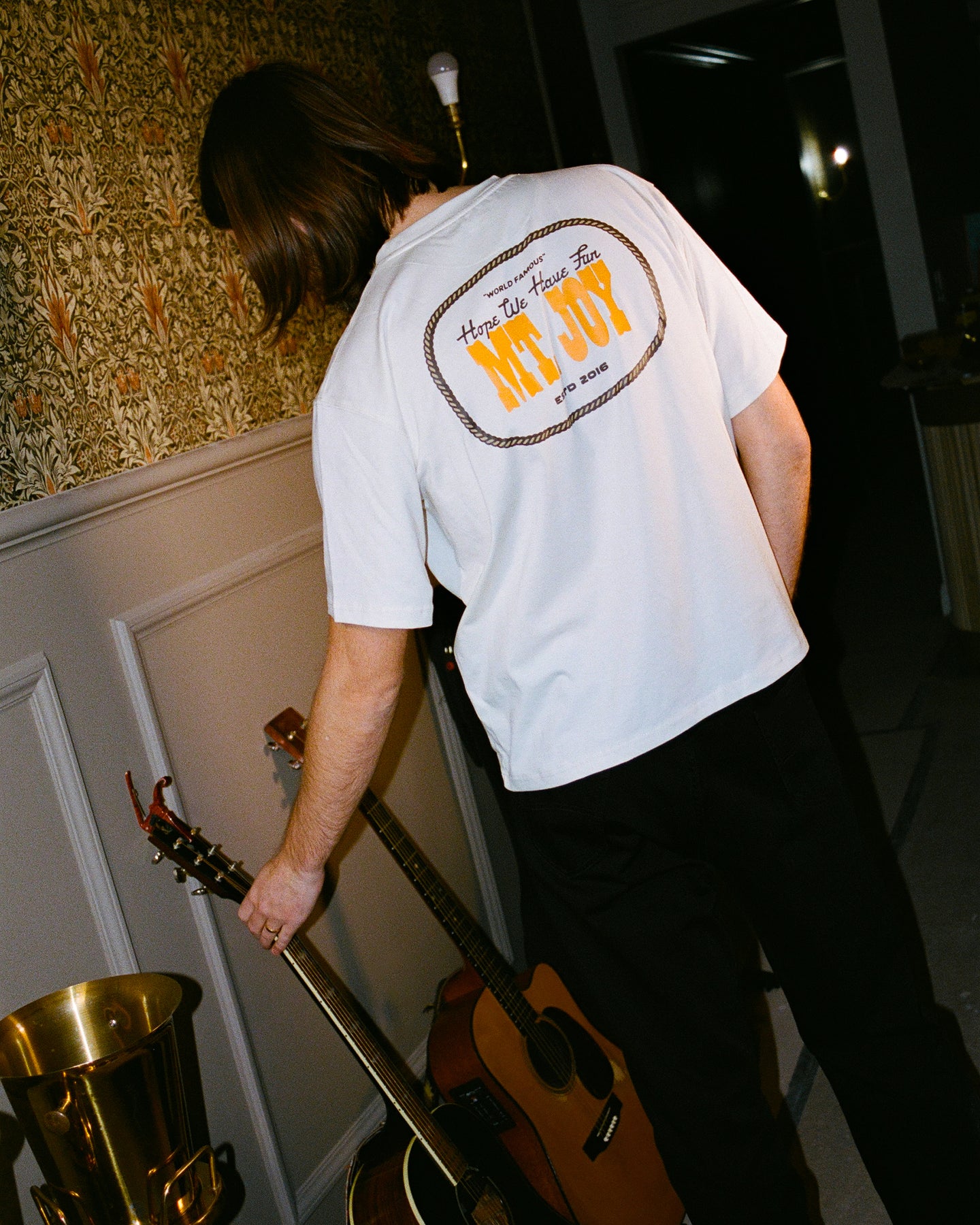 Made in partnership with Mt. Joy and inspired by their latest album, this tee channels the tone and imagery of the record into a wearable piece. A woven label sits at the front, while an Americana-style screen print—centered around the album artwork—anchors the back.